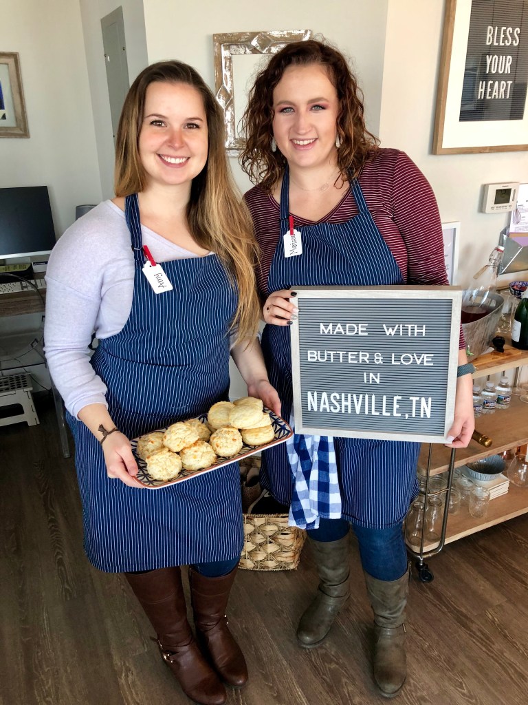 My bestie Amy and I got to Tennessee first, late on a Friday night to check in to our cute townhome. We woke up early the next day to make our way over to an Airbnb experience we had booked, a Southern Biscuit class with mimosas! The host was amazing and had such a great apartment overlooking the city and the iconic John Seigenthaler Bridge, more commonly referred to as the Pedestrian Bridge. Our biscuits were delicious and we had plenty for leftovers to snack on the rest of the weekend.