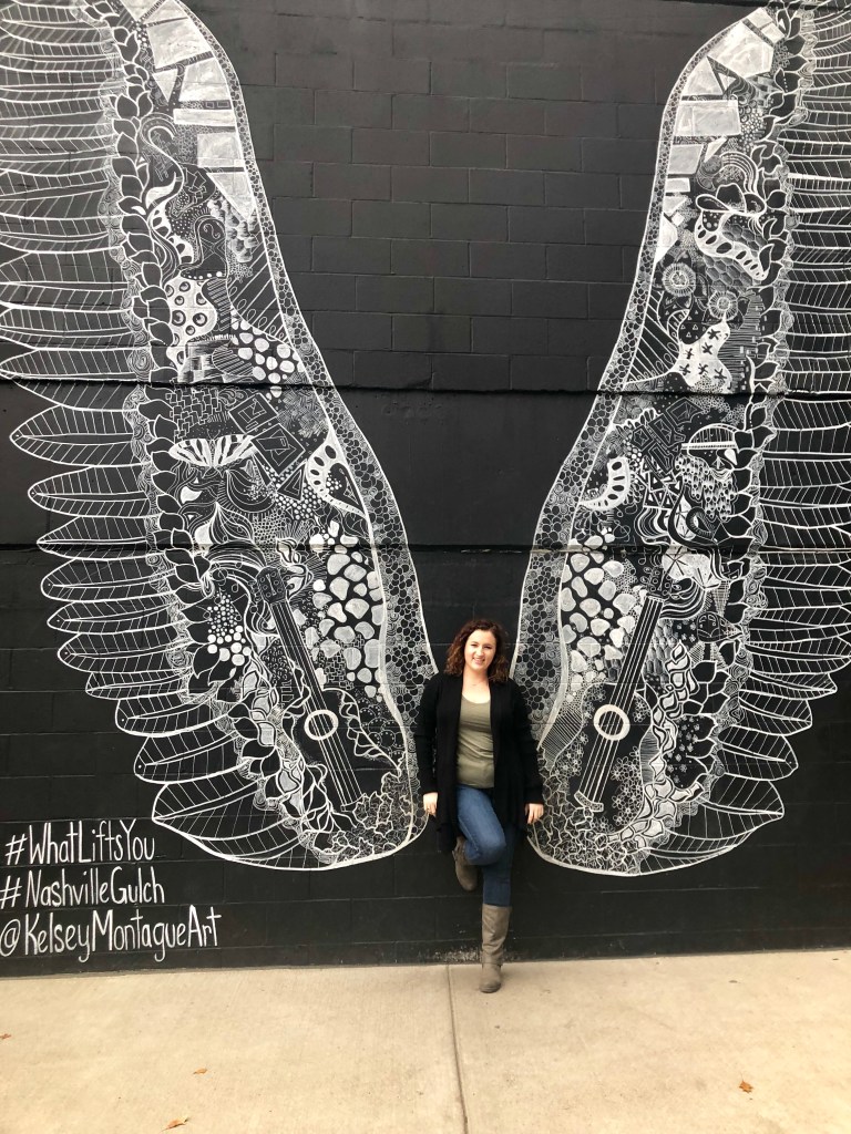 On our last half day in Nashville, we wanted to eat some good food and check out the infamous wings of Nashville that you see everyone posting about online. For food, we headed to The Diner, a six-story restaurant in downtown SoBro that is open 24 hours a day. The food was yummy and of course, the mimosas were perfect. We had just enough time to head to the Gulch area of Nashville, where the wings are located. The weather was a little bit chillier on this day, so there weren’t too many people standing in line for a photo. We snapped a few and then said goodbye to Kara and Nicole, who were staying an extra night. They did try to convince us to stay with them and attend a Predators hockey game…Amy and I were very close to saying yes.